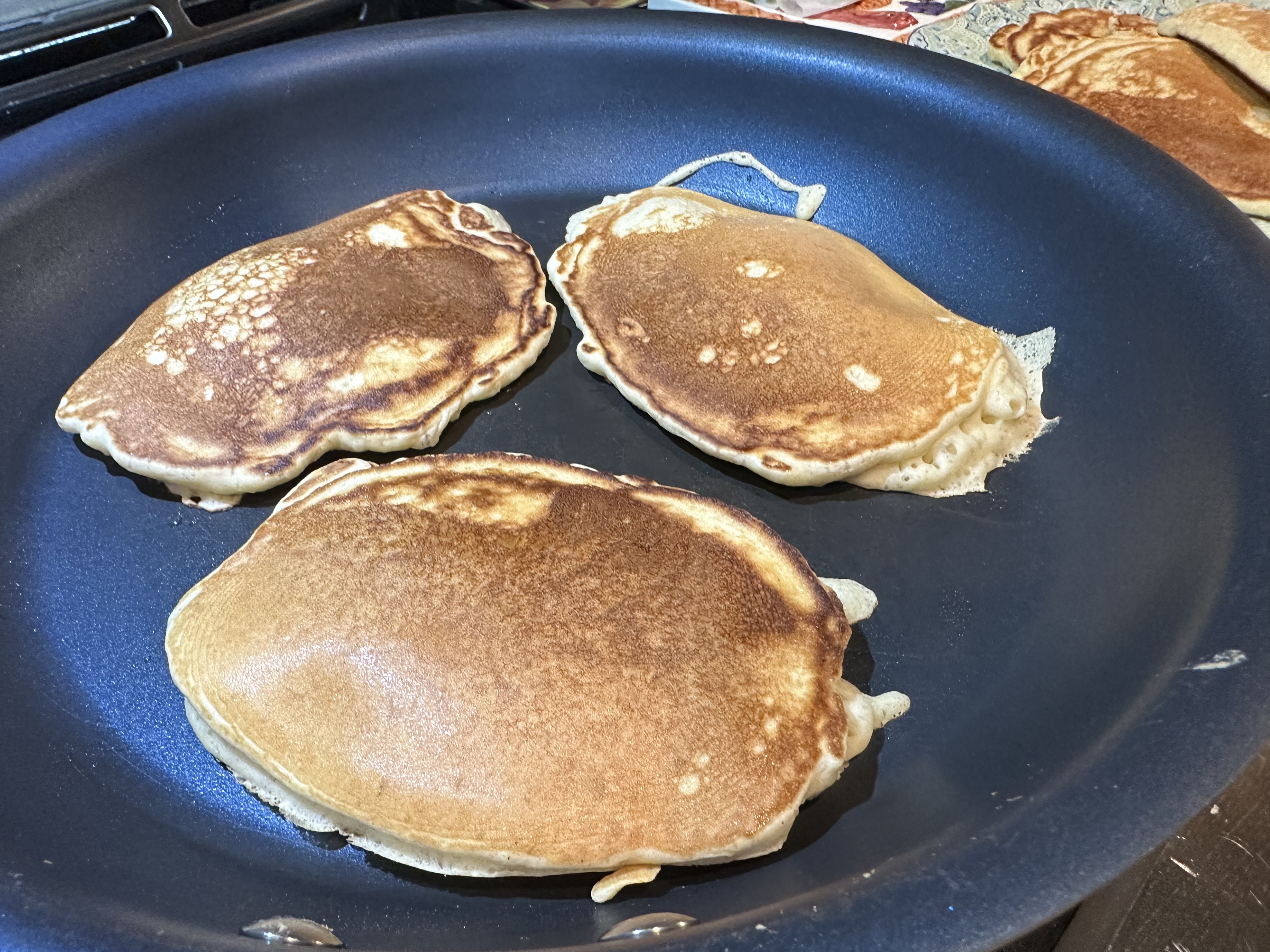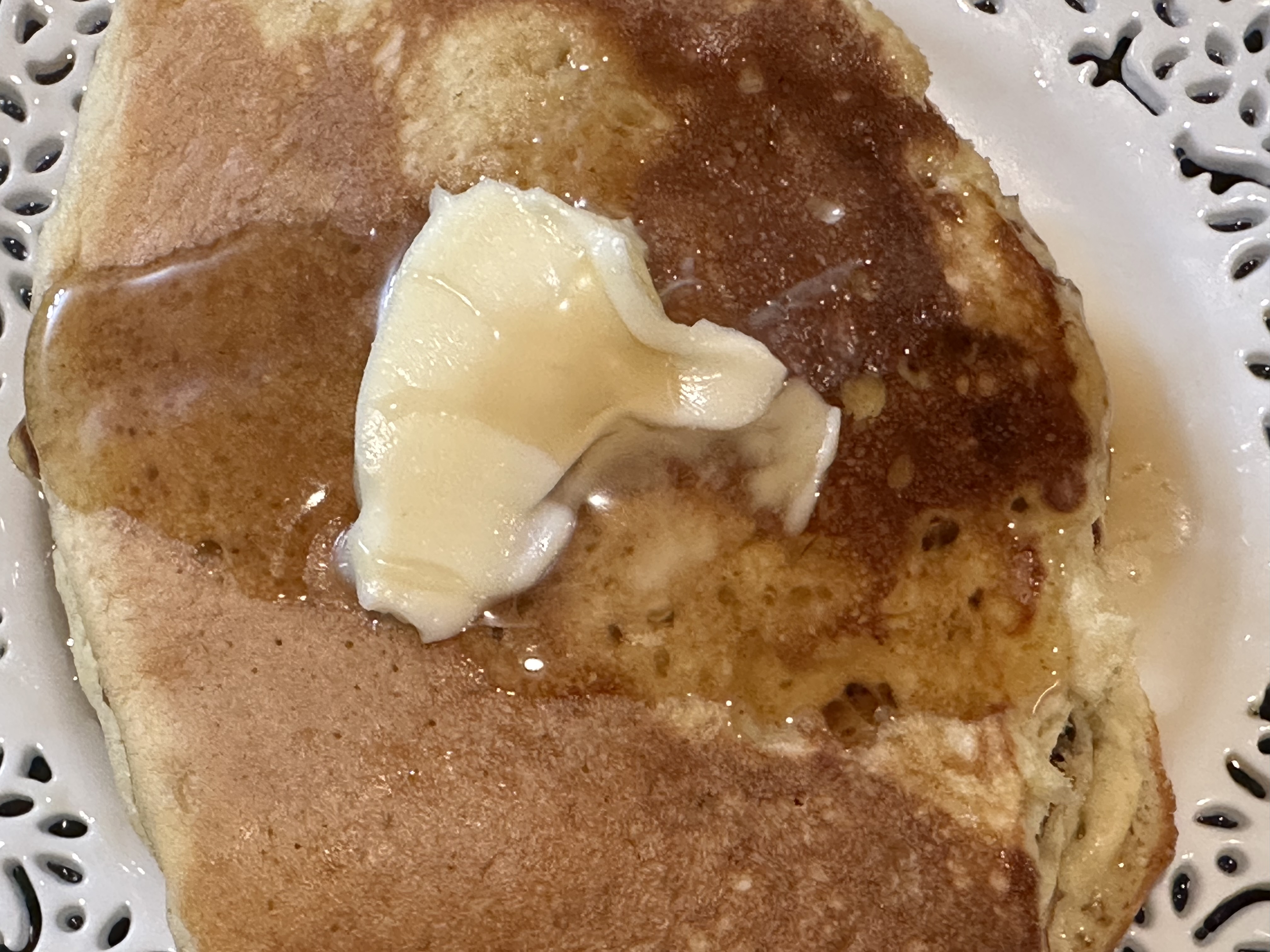 This recipe is adapted from our go-to waffle batter. The key difference is the consistency — pancake batter should be a little thinner so it spreads evenly on the pan. If you want to keep it richer, use the same ratio as the waffle batter and simply add a splash of milk.
