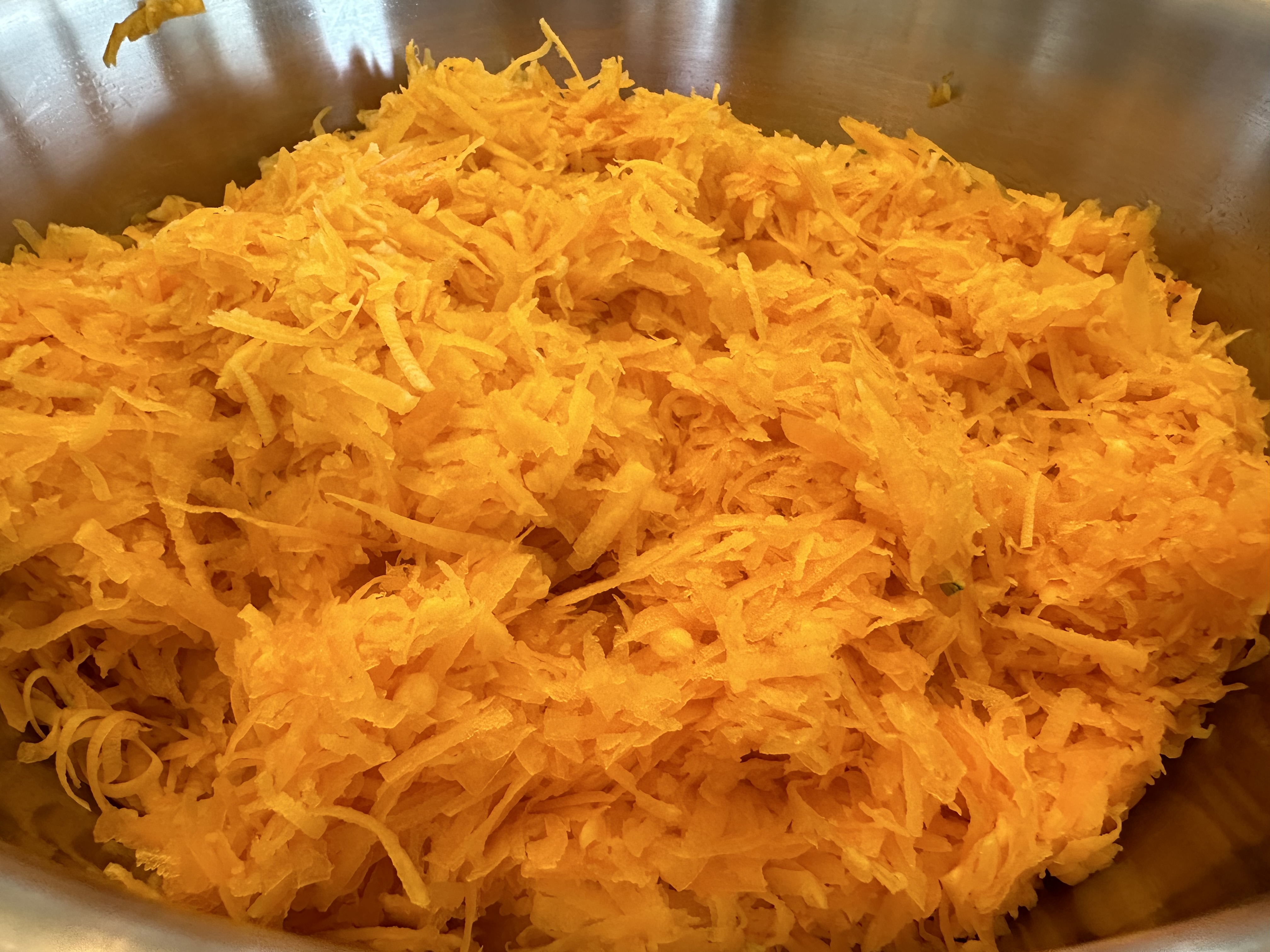 Peel and grate the light-skinned squash. Place it in a bowl, sprinkle with a little salt, and let it sit for 10–15 minutes to release excess water. Squeeze out the liquid well so the filling won’t be watery.
