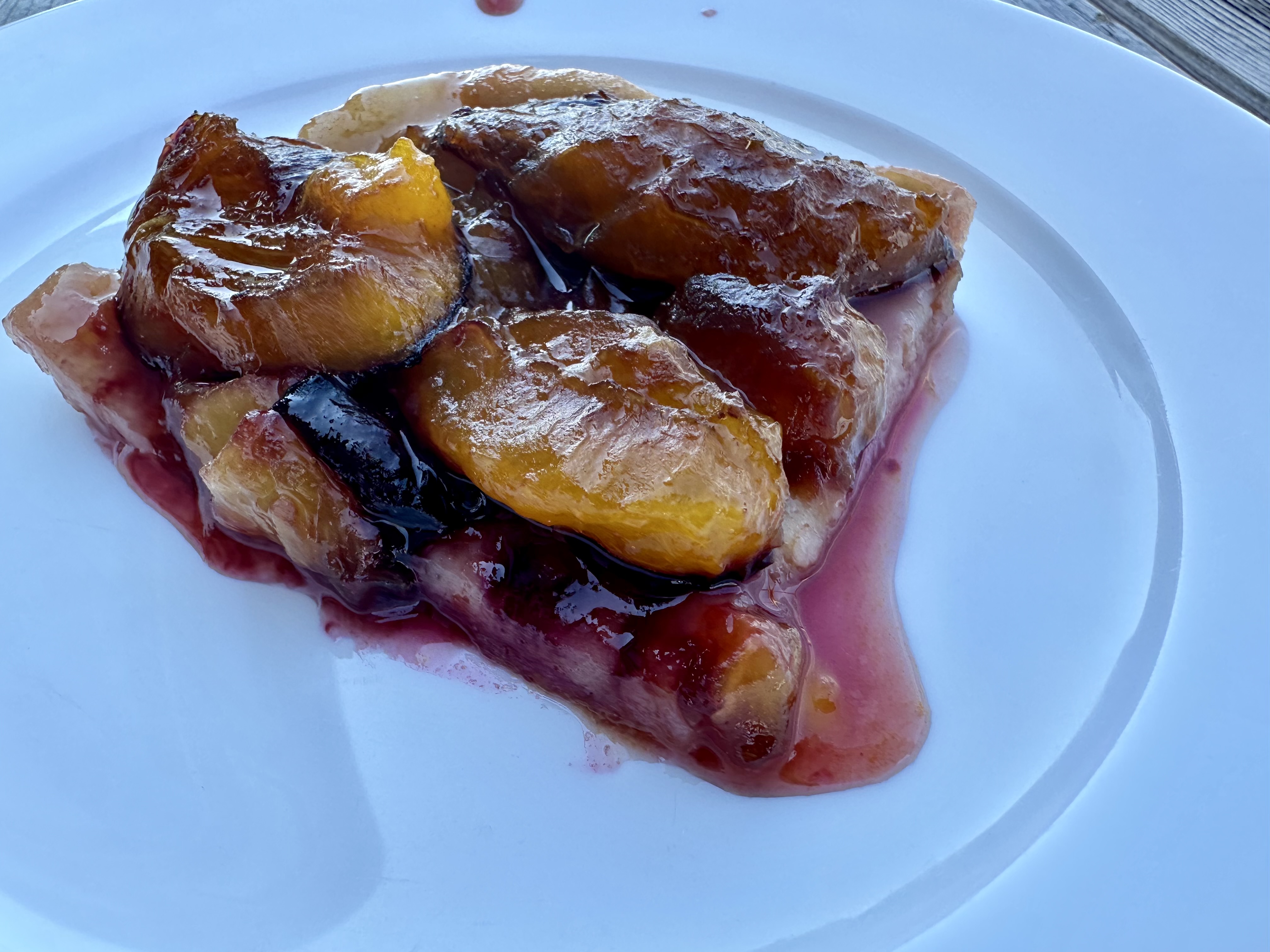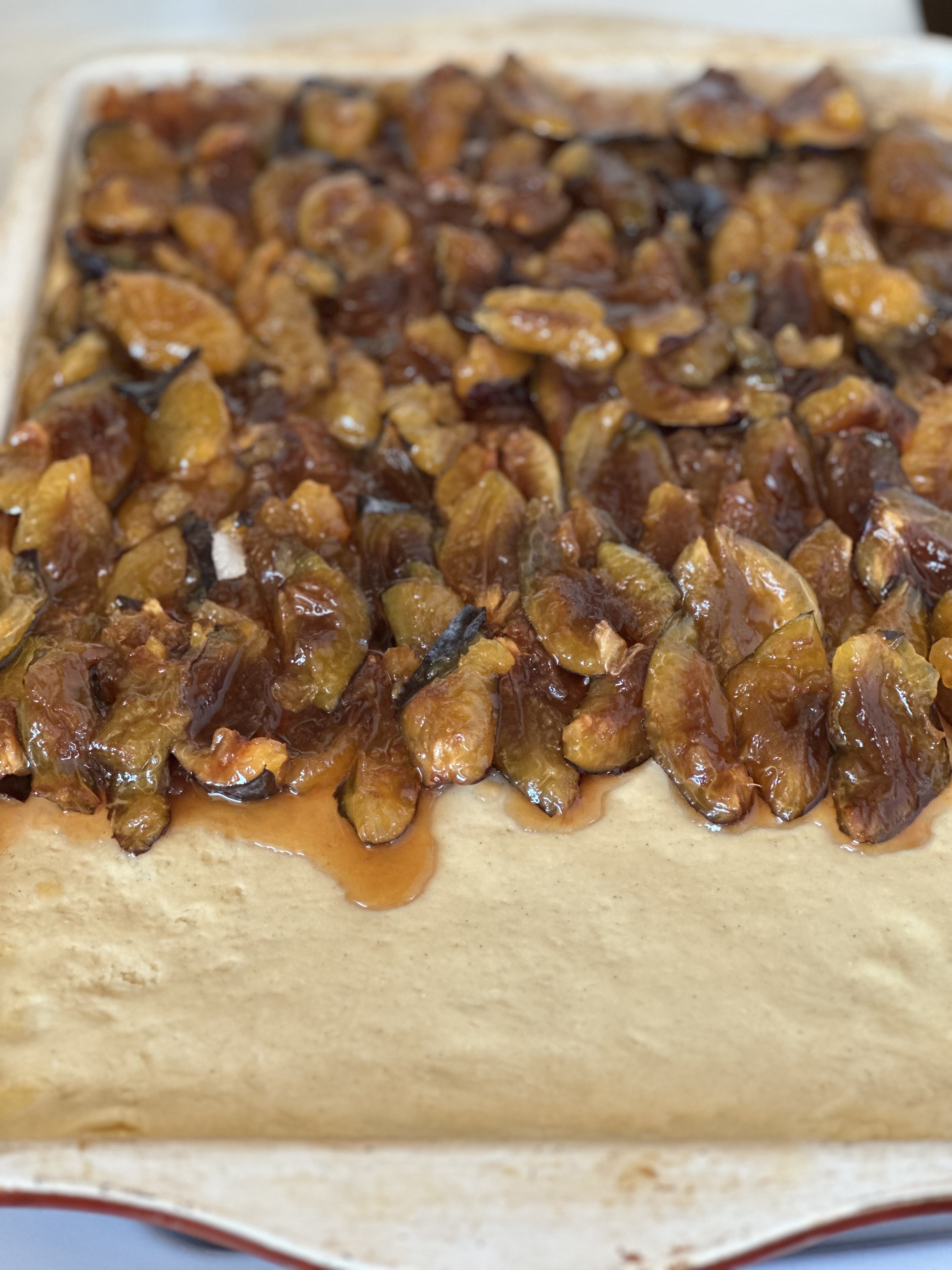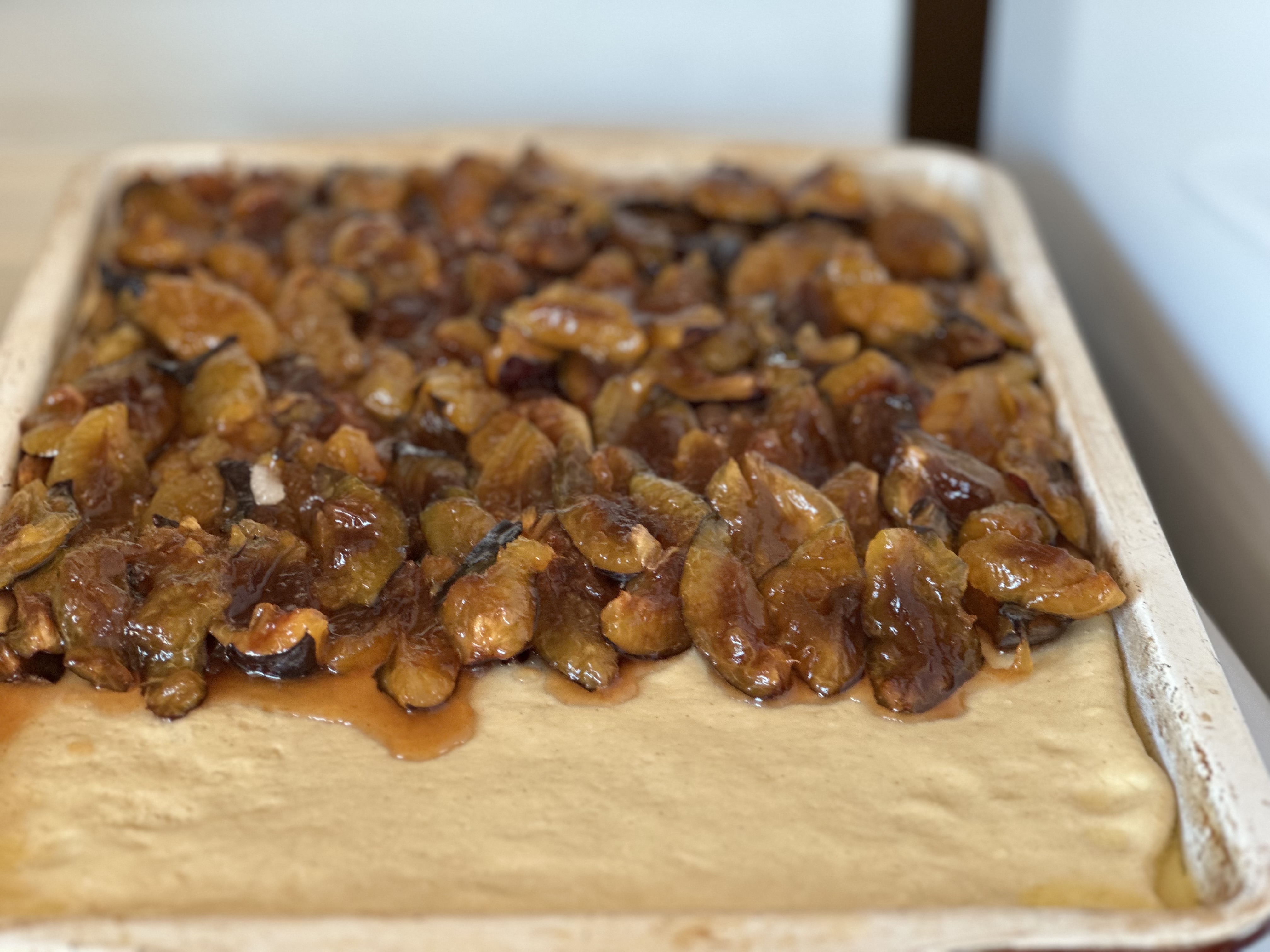 Step 8. Bake at 350°F (175°C) for 20–25 minutes; start checking at 18–20. It’s done when edges are golden, the plain side is lightly browned, and the plums look jammy. Tent loosely with foil if browning too fast before the center sets.